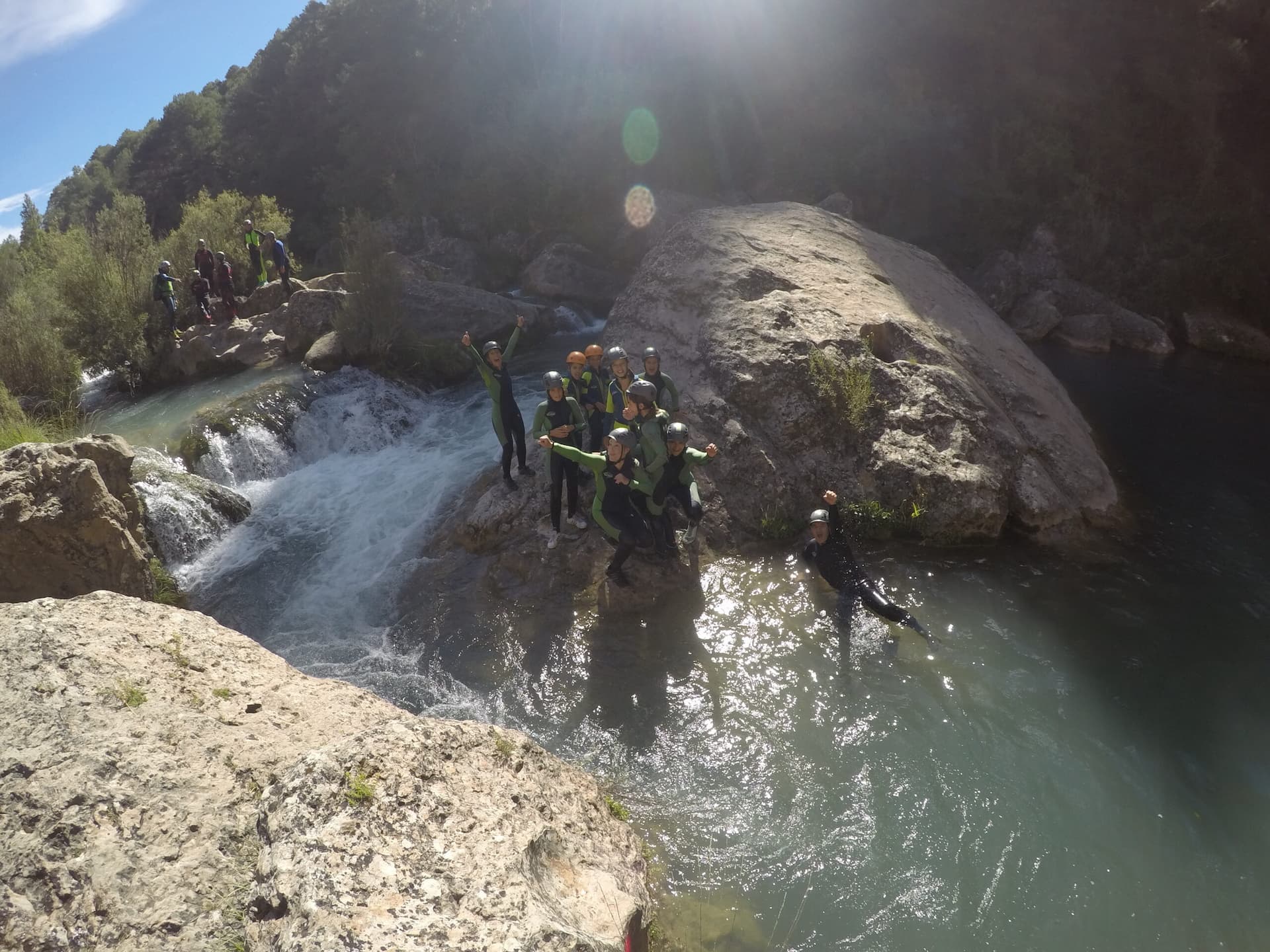 - Grupo después de realizar el tobogán de «la lavadora» del Barranco del Ventano del Diablo en Cuenca