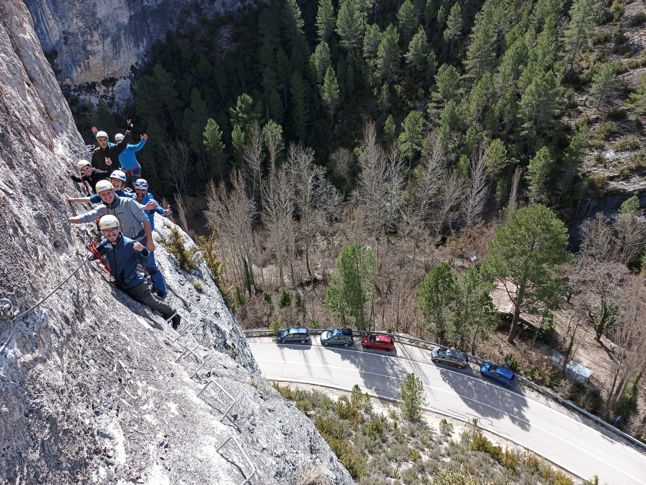 La aventura de la vía ferrata Fuertescusa Cuenca en su versión K2 es un paseo vertical que te familiariza con el uso del disipador y el arnés, siempre con la supervisión experta de Rutas Veleta.